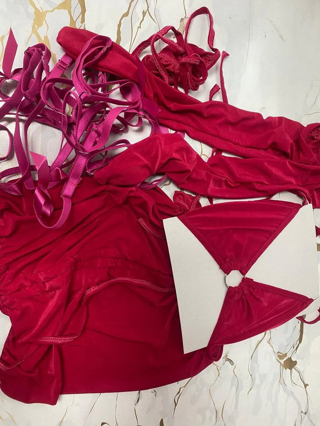 The halter-style top enhances the neckline, while the ruched mini skirt with tie-up detailing adds a playful yet elegant charm. Soft, stretchable fabric ensures comfort without compromising on style, making it perfect for special nights or when you simply want to feel extraordinary.