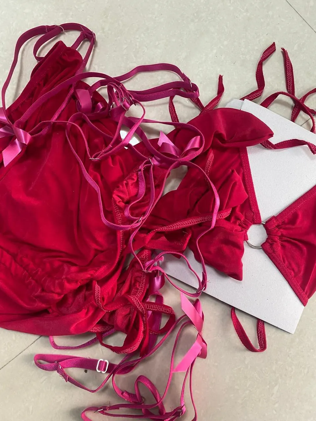Luxzii Pink Tie-Up Babydoll Lingerie Set with Mini Skirt