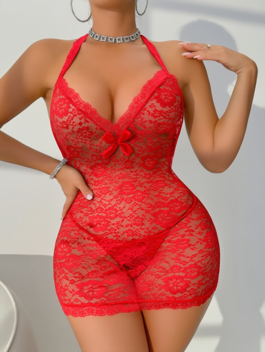 Turn up the heat with the Luxzii Seductive Red Lace Halter Babydoll, designed to make every night unforgettable. Crafted with ultra-soft sheer lace, this stunning piece features a deep plunging neckline, delicate floral lace pattern, and a flattering halter tie that enhances your natural curves beautifully.